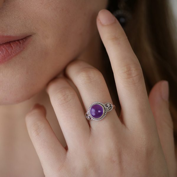 טבעת כסף 925 בשילוב אבן האמטיסט