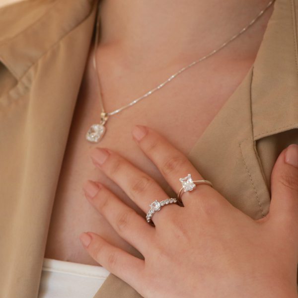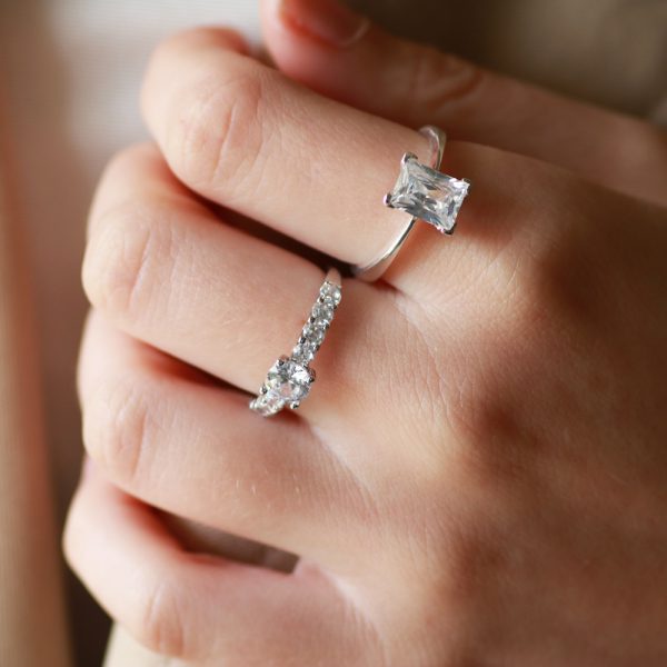 טבעת כסף אובל כפול מעוטר בזירקוניה.