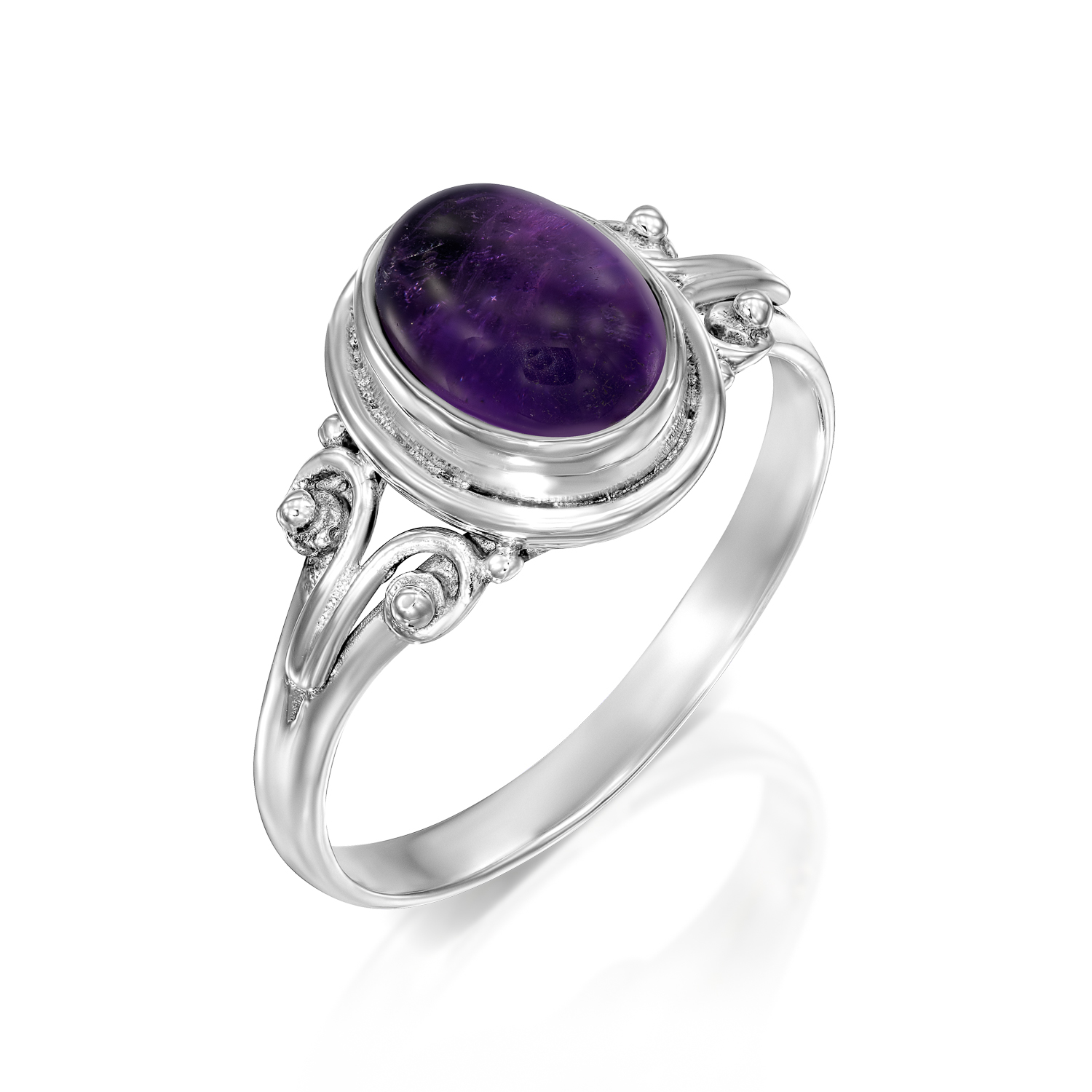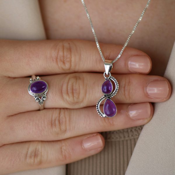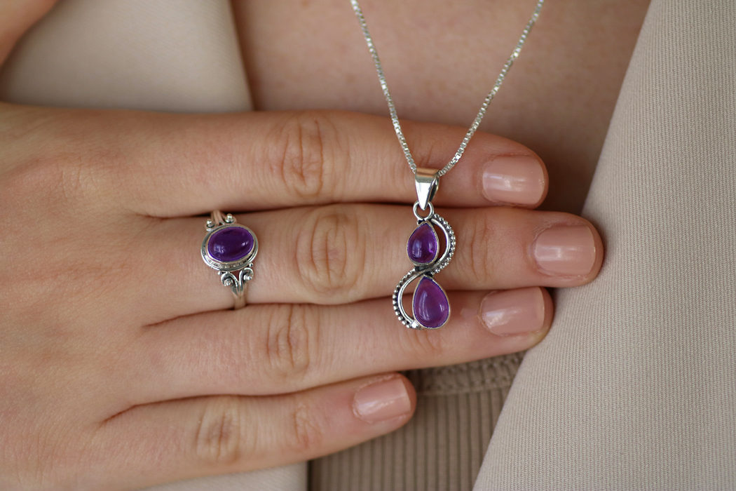 טבעת כסף 925 בשיבוץ אבן האמטיסט