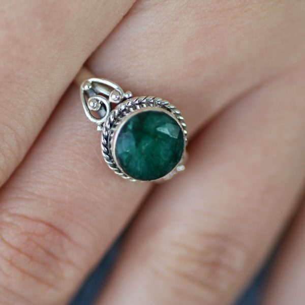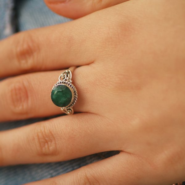 טבעת כסף “אמרלד” (אבן קורונדום ירוקה)