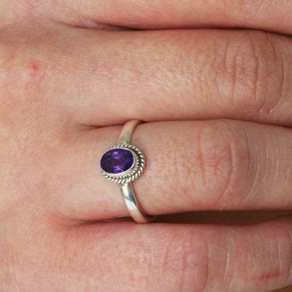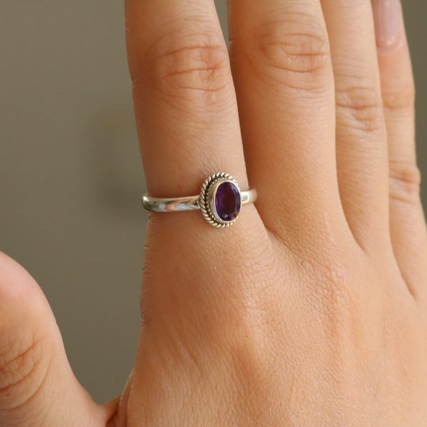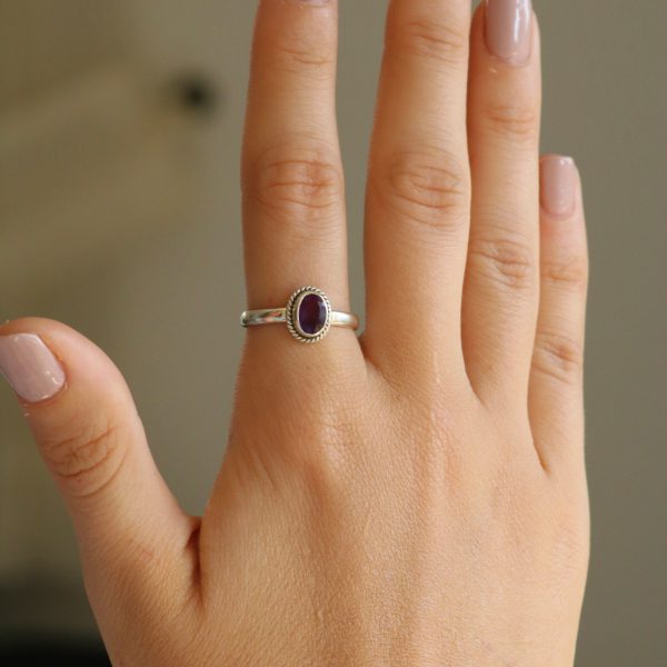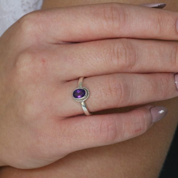טבעת כסף אבן אמטיסט עיגול מלוטש – דגם “Classic”
