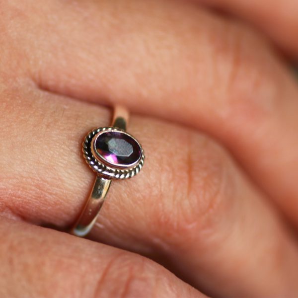 טבעת כסף 925 בשילוב אבן האמטיסט מלוטשת