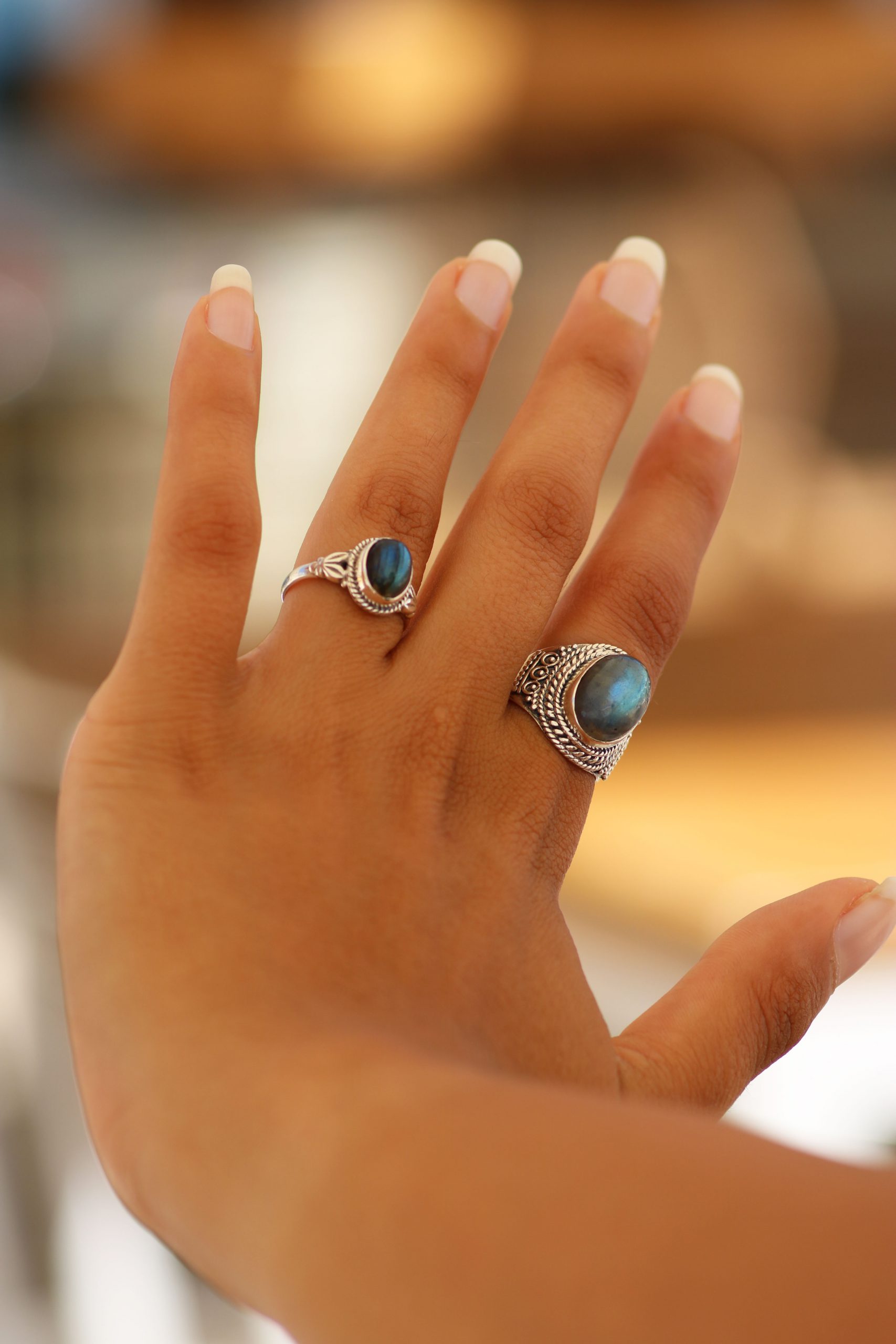 טבעת מכסף 925 משובצת באבן הלברדורייט