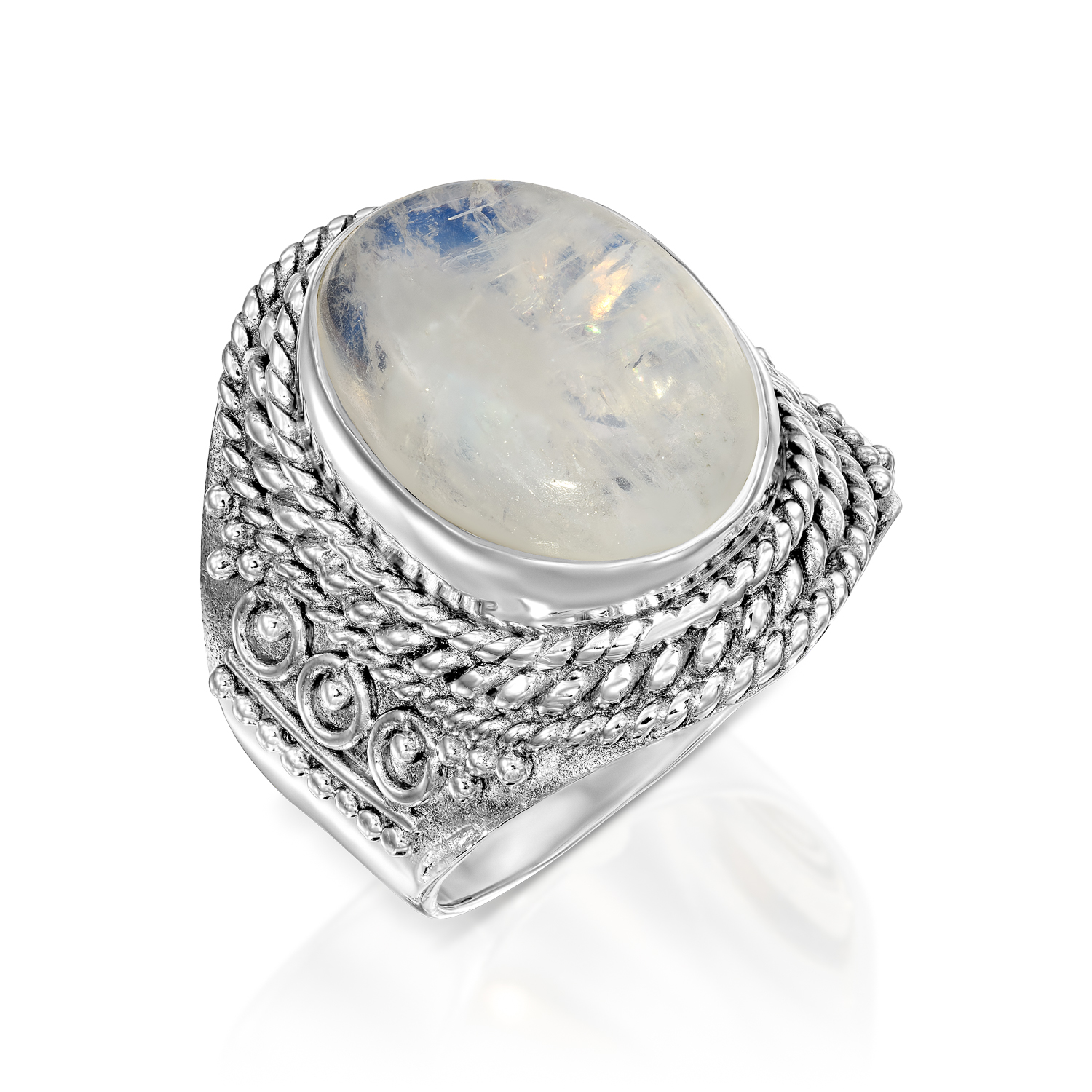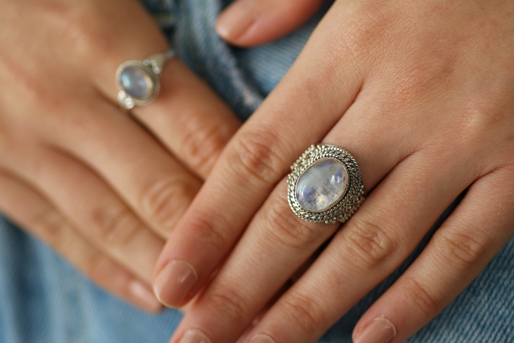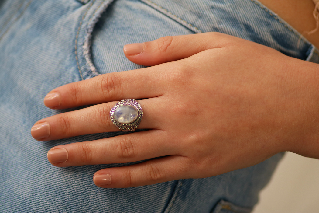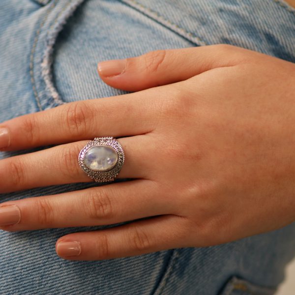 טבעת כסף מון סטון גדול