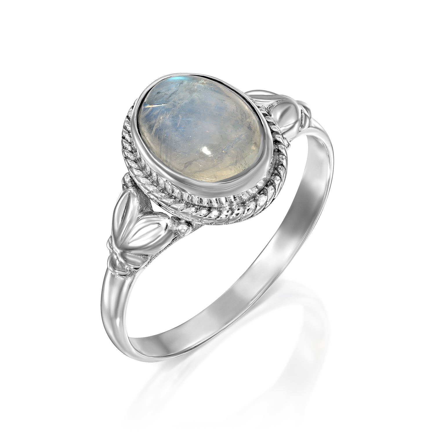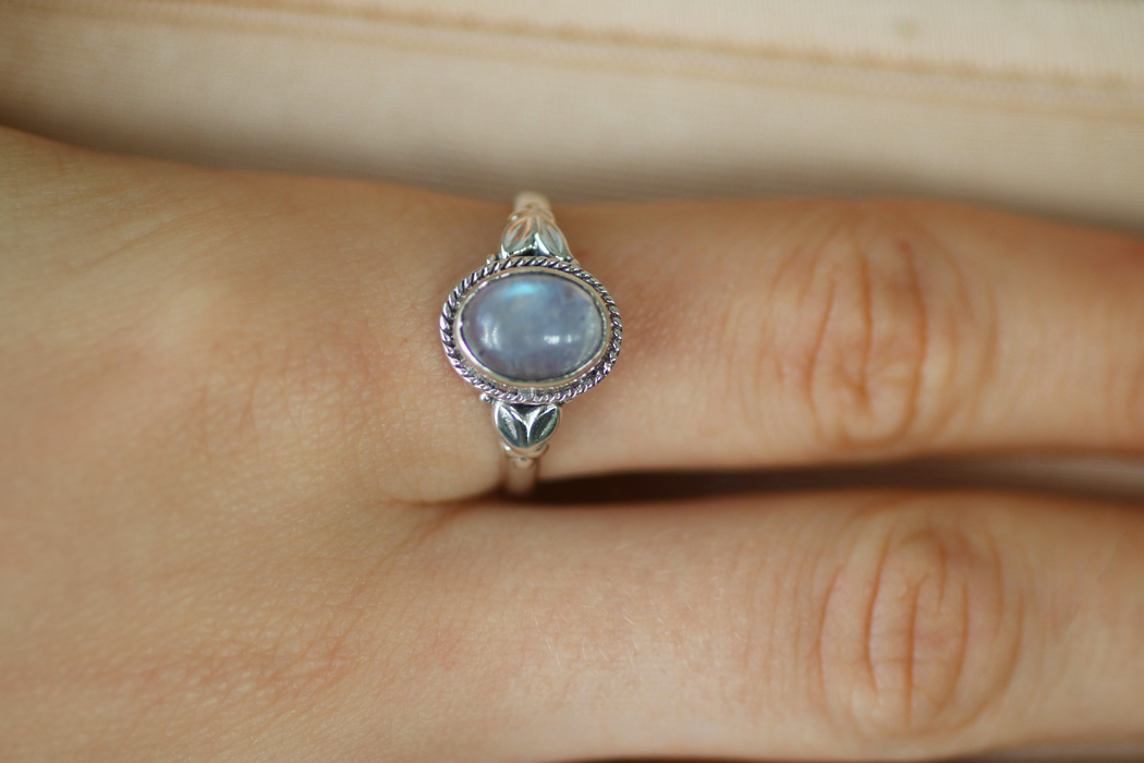 טבעת כסף מון סטון אליפסה