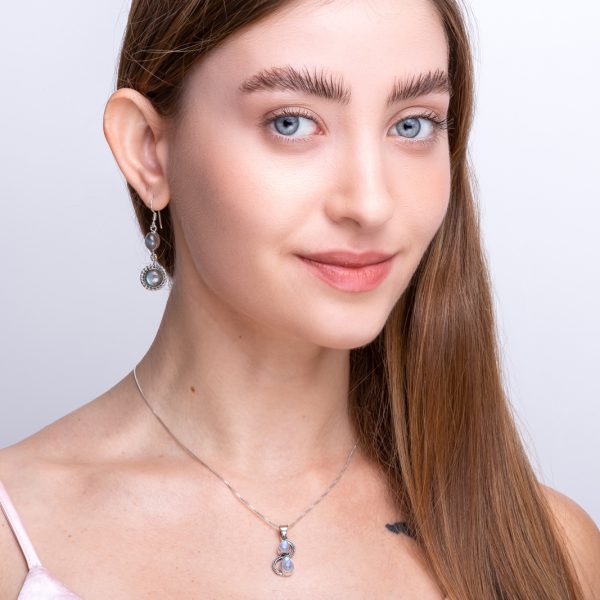 עגילים מכסף 925 בשילוב אבן הלברדוריט