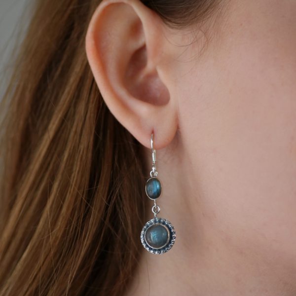 עגילי כסף לברדורייט אבן כפולה