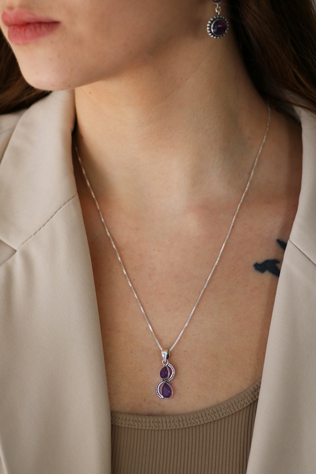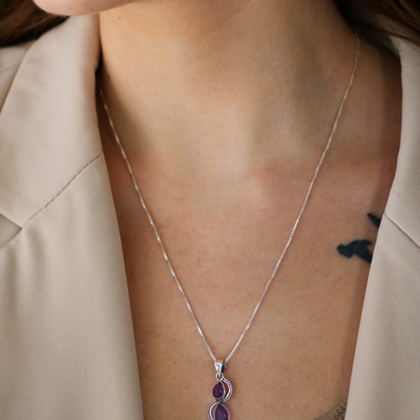 שרשרת כסף 925 בשילוב אבן האמטיסט