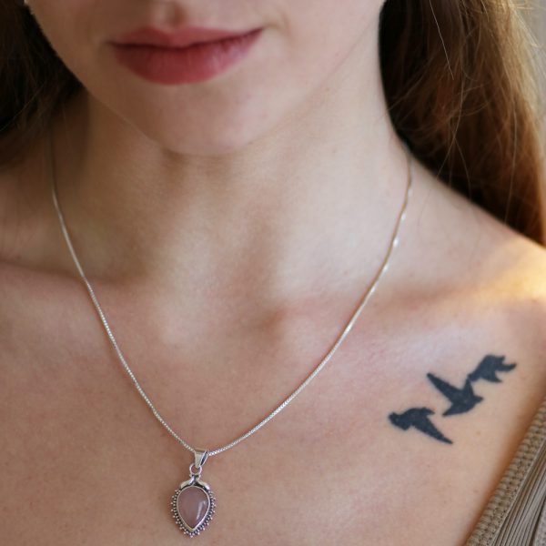 שרשרת כסף 925 בשילוב אבן הרוז קוורץ